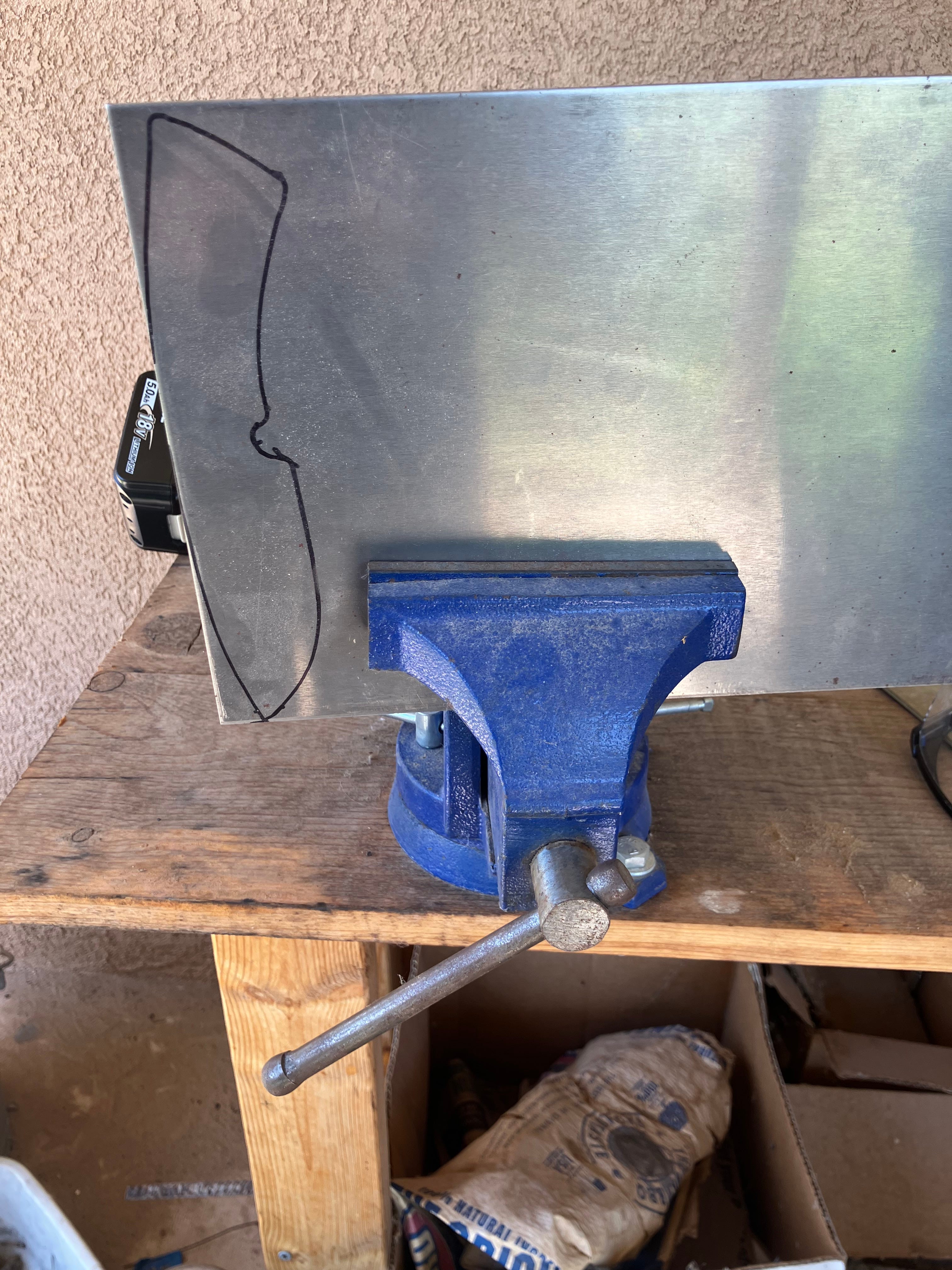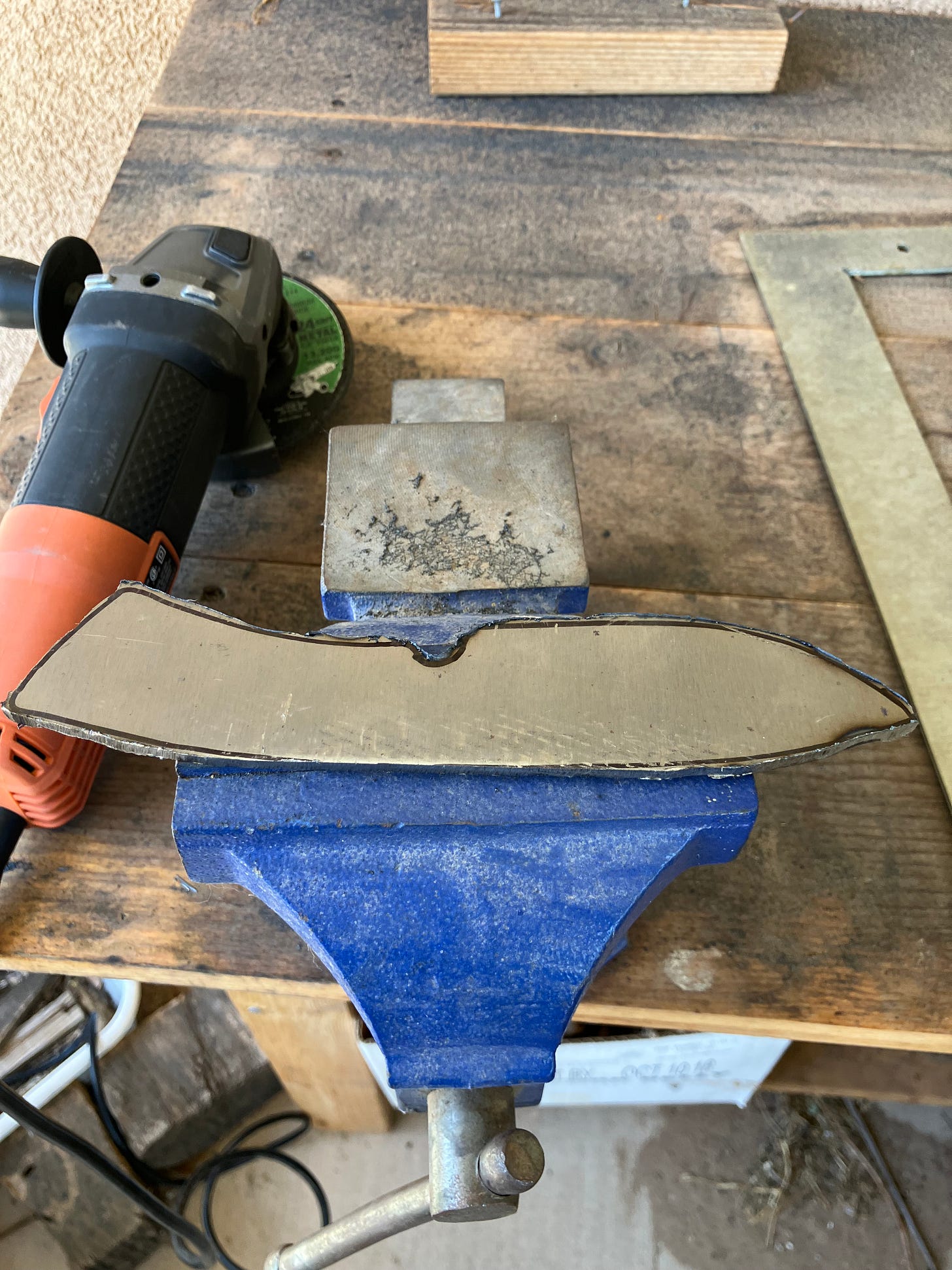 Once I’ve cut the blank off the sheet, I need to rough out the blade, again with a cutting blade. You could also use a hacksaw.