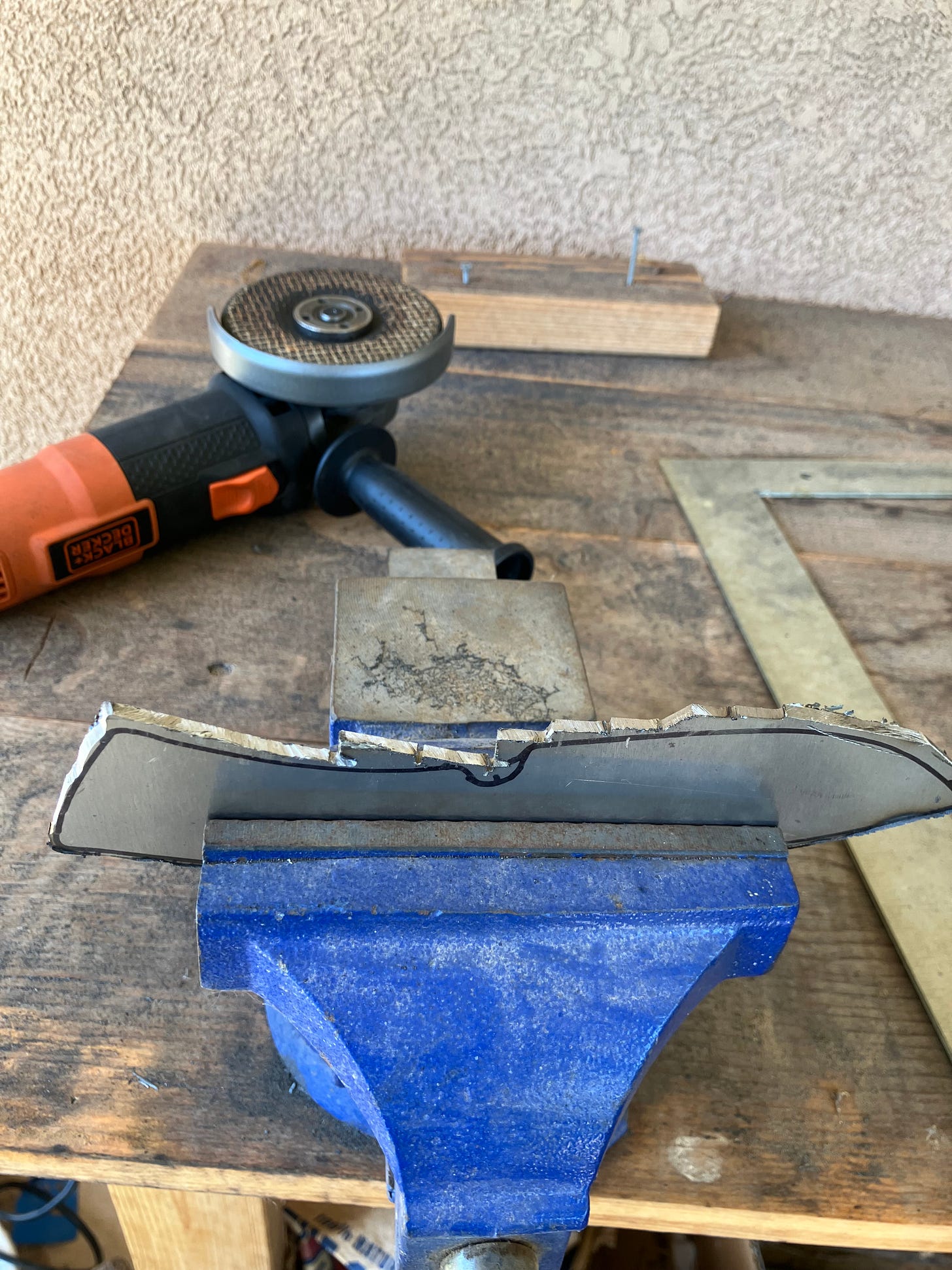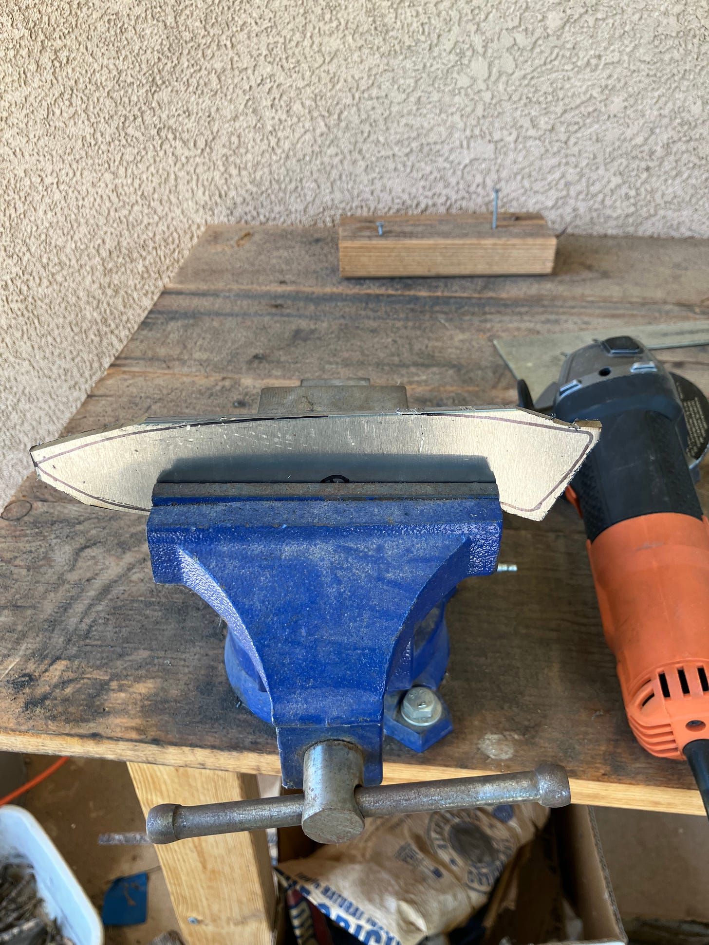 After that, it’s shaping the blade, again with the angle grinder but this time with a grinding blade. When I first started I did this with mill bastard files; this was the part that always took longest and was very tedious. With an angle grinder it only takes a few minutes.