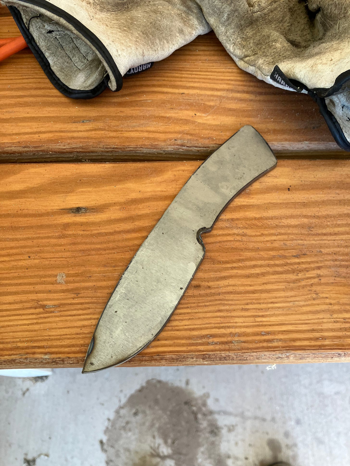 I avoid making knives out of “mystery steel” except as novelty items. Mystery steel includes old wrenches, files, saw blades, horse shoes, rebar and rail road spikes. While often these are good, strong steels they don’t harden like a good high-carbon tool or spring steel, even if quenched in water. As a result they don’t hold an edge, and often will warp or crack when quenched. I tend to stick to steel I purchase for the knives I’m giving to people who are going to use them.